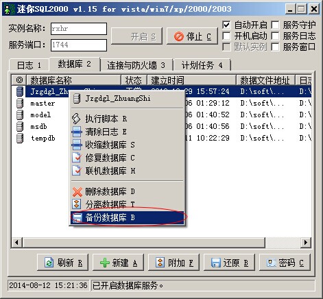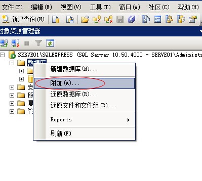 二、正式版Sql2000、Sql2005、Sql2008數(shù)據(jù)庫(kù)有兩種方法,第一種與迷你Sql2000相同備份后再還原,第二種是復(fù)制數(shù)據(jù)庫(kù)文件后,重新附件數(shù)據(jù)庫(kù)。