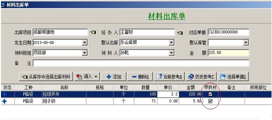 4. 【材料出庫單】出庫單明細(xì)中所有的材料都進(jìn)入出庫單中選擇出庫項目的成本。