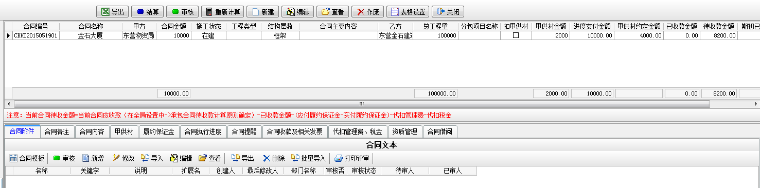 備注:具體承包合同工程收款參見教學視頻快速入門2