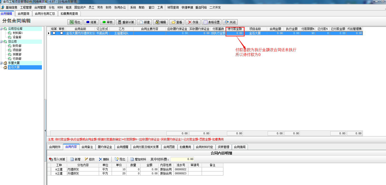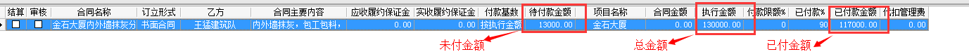 我們看一下分包合同顯示的未付款金額,總金額,已付金額 如下圖