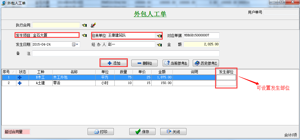 三.合同外零、點工的錄入。