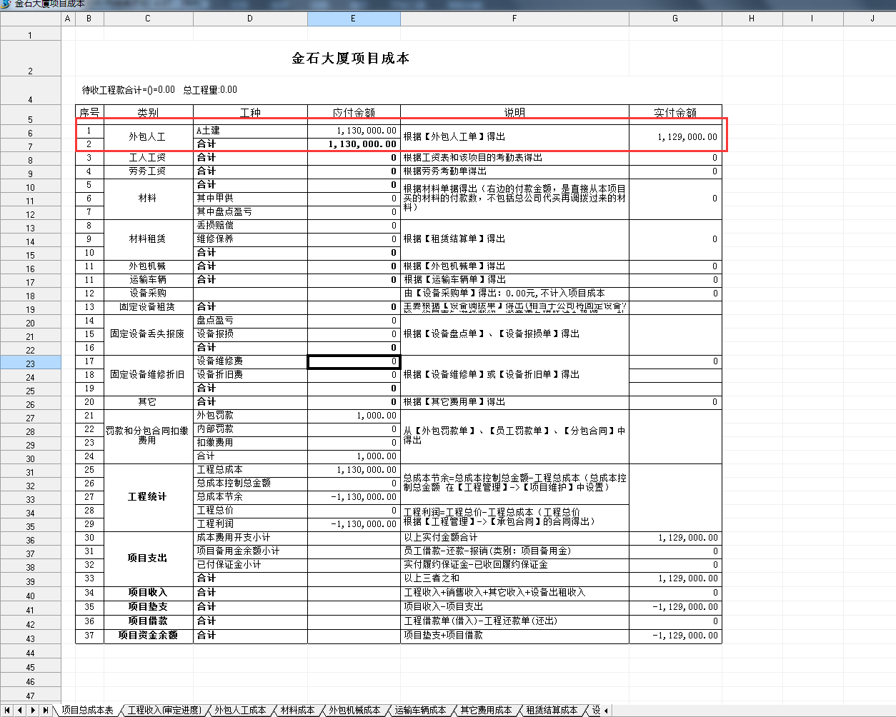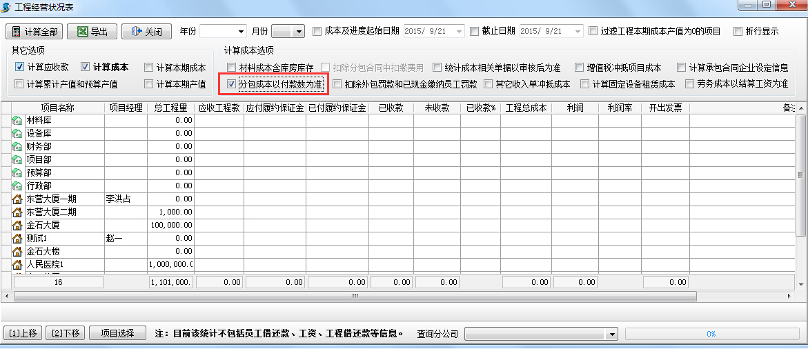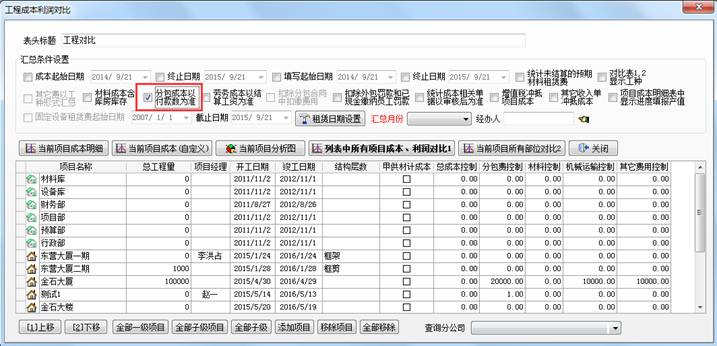 工程項目分包成本是根據(jù)外包人工單中項目名稱自動匯總統(tǒng)計到該項目。