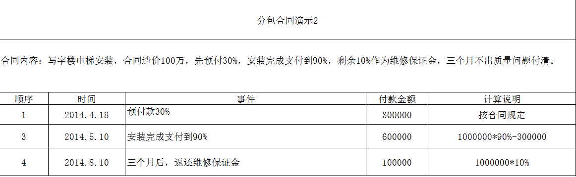 付款完成后,這樣我們就完成了這個單價分包合同。