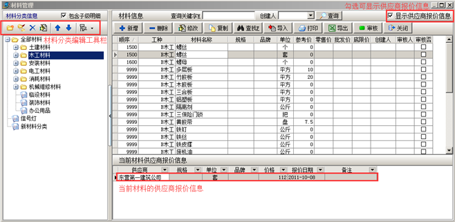 工程項(xiàng)目管理軟件中基礎(chǔ)信息—材料維護(hù)(審核)