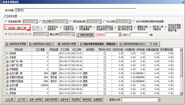 點(diǎn)擊系統(tǒng)的“工程管理”-“工程成本利潤(rùn)對(duì)比”: