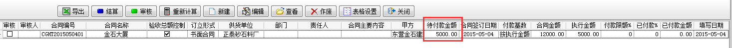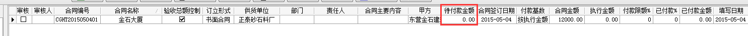 當我們選擇執(zhí)行金額時,沒有驗收記錄,待付款金額顯示為零。