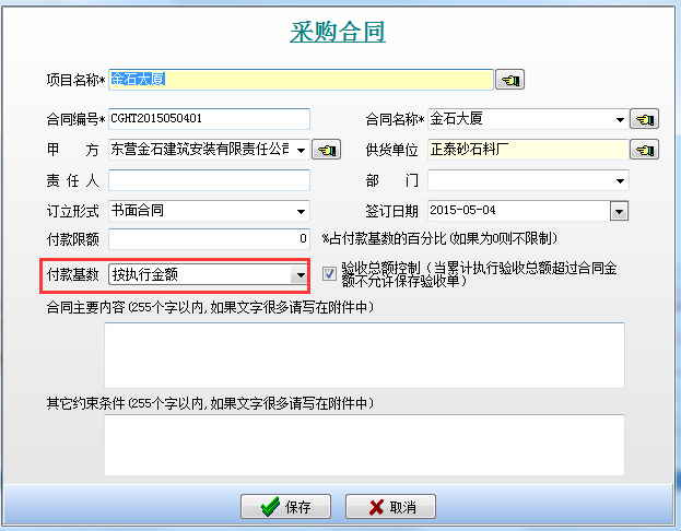 項目付款總控制(付款控制)即付款按執(zhí)行金額來付款。
