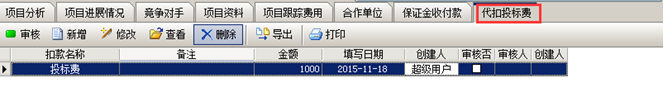 各項設(shè)置添加完成之后,在工程管理軟件的項目開拓列表里面會顯示“投標(biāo)待辦”(例如項目的投標(biāo)保證金),如圖:
