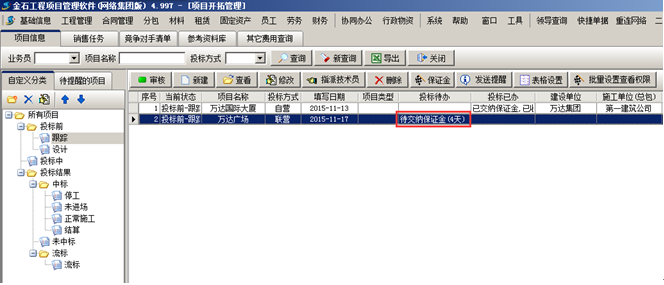 也可根據(jù)投標(biāo)方式、業(yè)務(wù)員、項目狀態(tài)查詢。