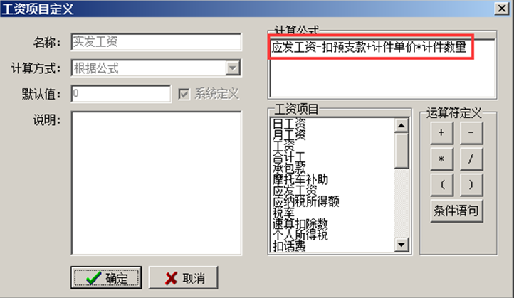 二、工程管理軟件中應發(fā)工資如何定義公式。