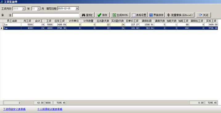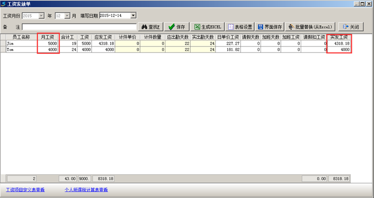 (2)“當月應出勤”為手工錄入,默認值為大于0的數(shù),否則生成工資表后會出現(xiàn)除數(shù)為0的錯誤