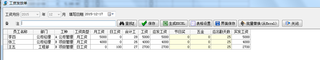注:前兩種方法都是按軟件正常的流程處理工資(通過【員工考勤單】生成【員工工資單】,能將每個月發(fā)生的【員工罰款單】、【員工預(yù)支款】、【員工請假單】、【員工加班單】這些單據(jù)關(guān)聯(lián)到【員工工資表】中)