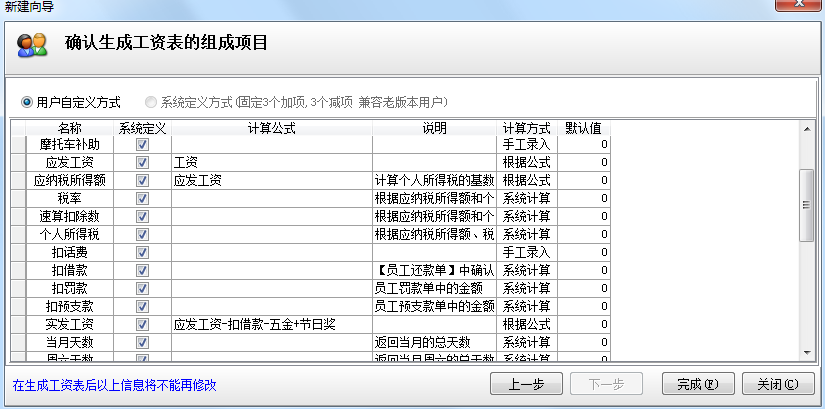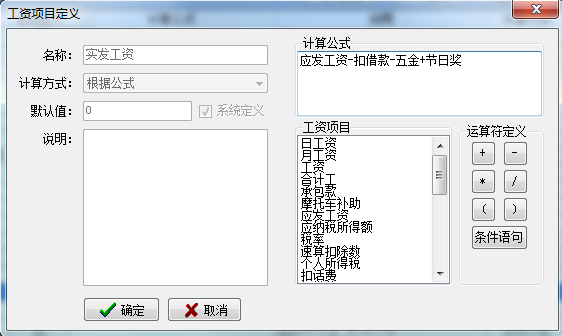 工資項目定義實發(fā)工資設(shè)置如下圖: