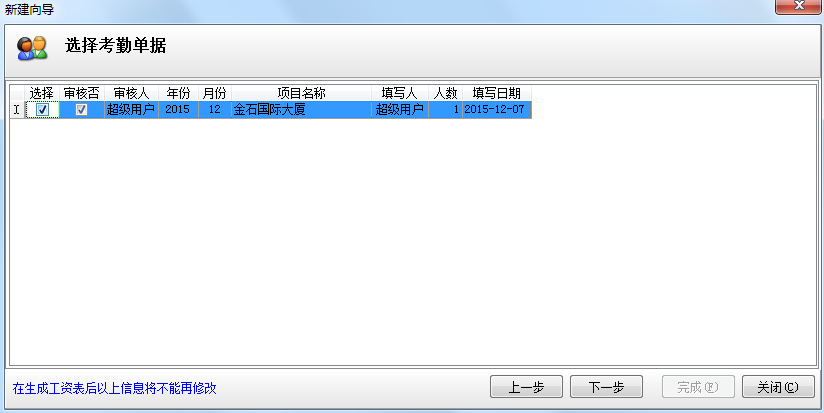 生成員工工資表時按照向?qū)нx擇審核通過的影響員工工資的單據(jù),如圖: