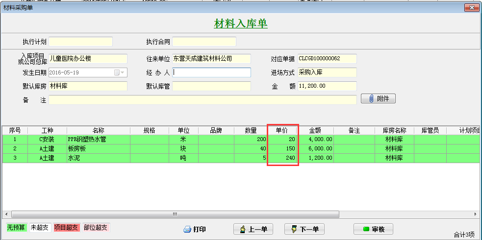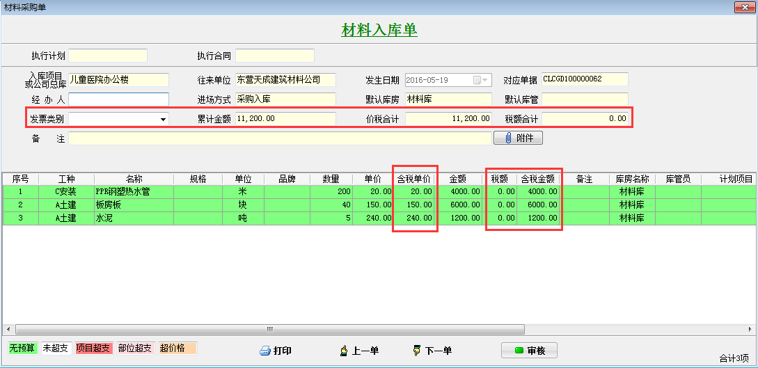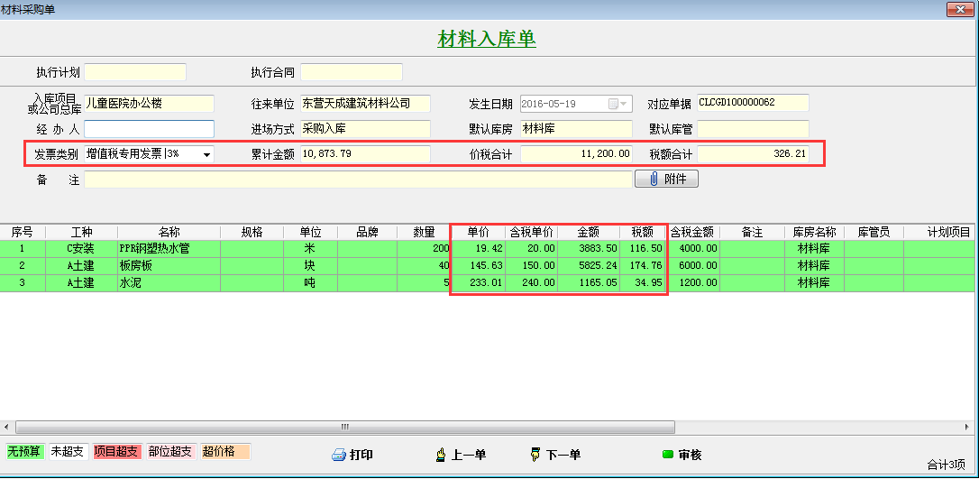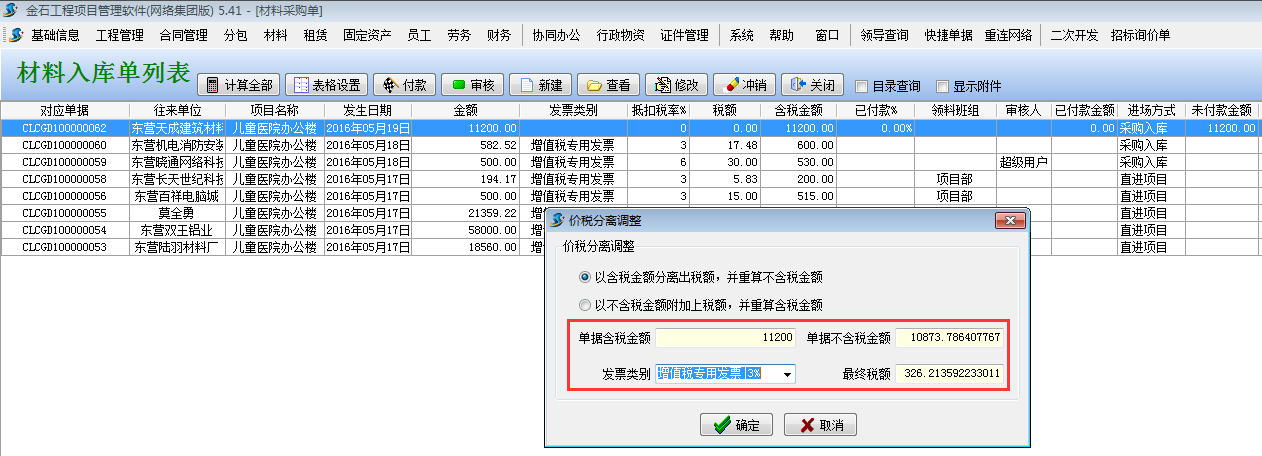 2.在營改增后.以前版本做的單據(jù)如何實(shí)現(xiàn)價(jià)稅分離調(diào)整?我們以材料入庫單(即材料采購單)為例,進(jìn)行演示: