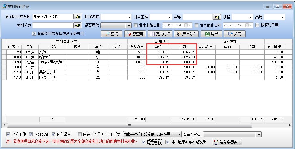 ⑴.庫存查詢和用量查詢以不含稅單價(jià)和金額統(tǒng)計(jì)。如下圖: