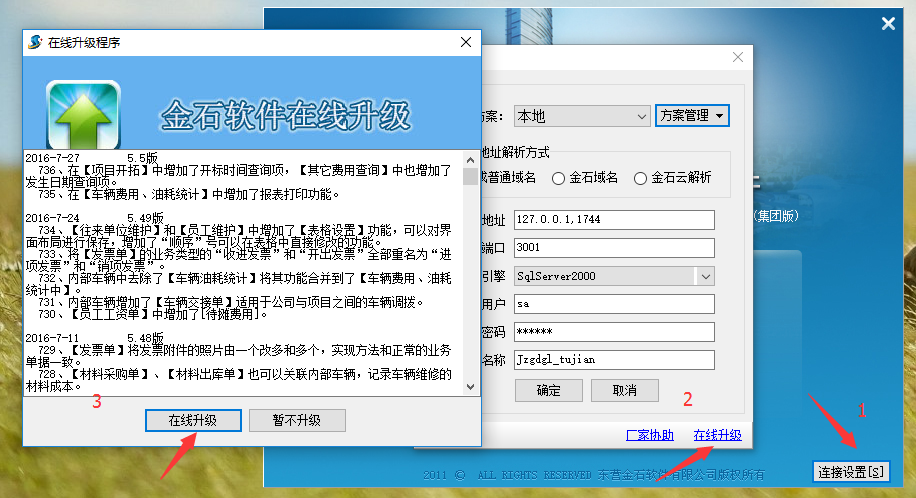 雙擊打開金石軟件圖標→連接設(shè)置→在線升級→人工升級