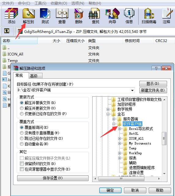 下載完成后解壓文件,覆蓋金石工程項目管理軟件客戶端(下圖)