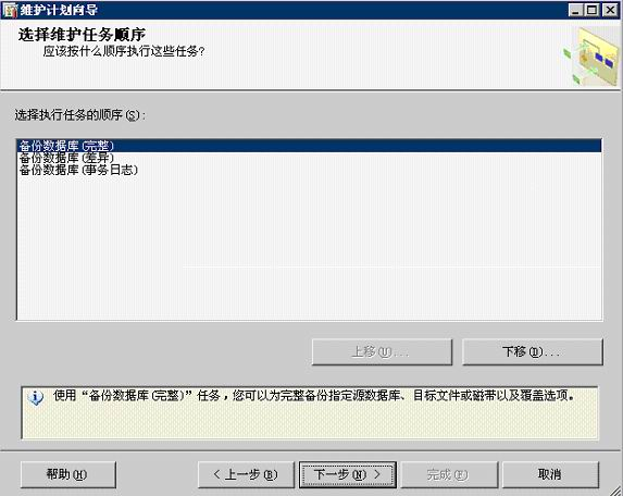 8、點擊【下一步】按鈕:彈出以下【選擇維護任務順序】對話框,如果有多個維護任務,在此可以通過【上移】和【下移】兩個按鈕來設(shè)置維護任務的順序,設(shè)置完畢后單擊【下一步】按鈕。