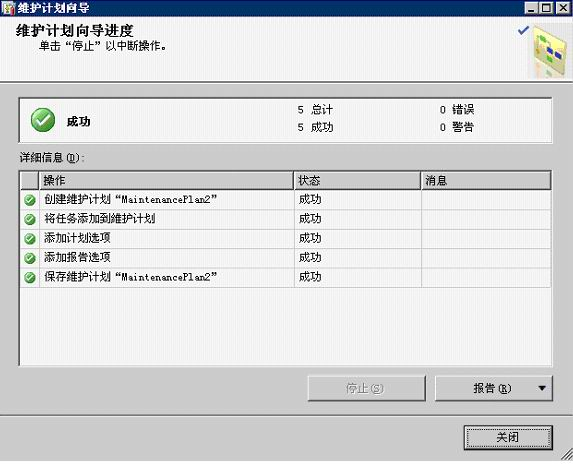 12、創(chuàng)建完維護計劃后,出現(xiàn)以下【維護計劃向?qū)нM度】畫面,這樣就完成了自動備份的操作。