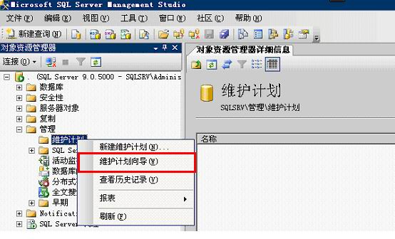4、右擊【維護計劃】,在彈出的快捷菜單里選擇【維護計劃向?qū)А窟x項