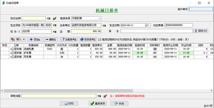 租賃管理模塊新增加功能【機(jī)械日?qǐng)?bào)單】。
