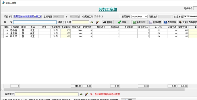 1、項(xiàng)目部以【勞務(wù)考勤單】為勞務(wù)進(jìn)出場(chǎng)的日?qǐng)?bào),需每日完成。月底根據(jù)【勞務(wù)考勤單】生成月度工資表進(jìn)行結(jié)算