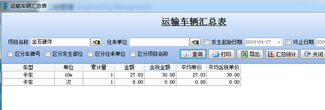 用戶也可以自由查詢成本的明細。可以查詢【運輸車輛匯總表】。