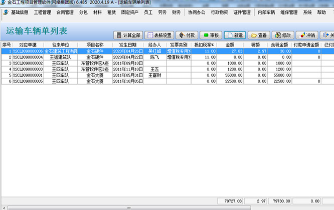 該單據是工程管理系統中車輛管理的基礎憑證,單據內部的數據,會對【工程成本】、【應付賬款查詢】、【供應商應付賬款匯總查詢】、【運輸車輛匯總表】這幾個模塊產生影響。