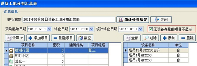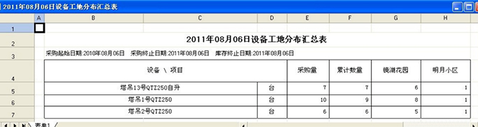 除了設(shè)備調(diào)撥單列表之外,系統(tǒng)中還有更全面的設(shè)備工地分布表。可以非常直觀的看到企業(yè)的固定資產(chǎn)在各個工地的分布情況。