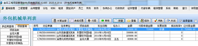 在填報了基礎(chǔ)信息之后,需要打開管理外包設(shè)備的基礎(chǔ)單據(jù)-【外包機械單】。