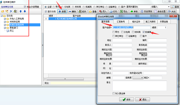 所謂的往來單位維護(hù),主要將機械設(shè)備的供貨商信息錄入系統(tǒng),方便以后進(jìn)行維保、二次采購等操作。操作界面如下:
