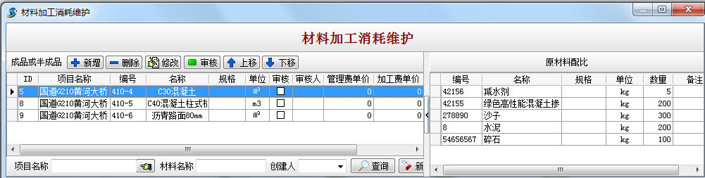 在實際應(yīng)用中,根據(jù)預(yù)算軟件或其他方法獲得的詳細秘密配方不準確。在制造實驗過程中獲得的原材料秘密配方可輸入材料成本維護,并根據(jù)準確的配合比控制材料的數(shù)量和進度。