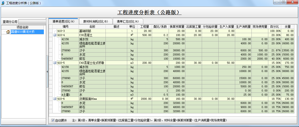 在施工進度計劃的基礎(chǔ)上,即(工作部位分解)的基礎(chǔ)上,編制材料需求計劃、建立材料成本維護、材料加工清單、材料出庫單或調(diào)撥單關(guān)系明細,產(chǎn)生詳細的進度比較和詳細的歸納比較。
