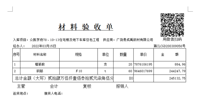 金石工程項(xiàng)目管理軟件新增單據(jù)掃二維碼查看功能
