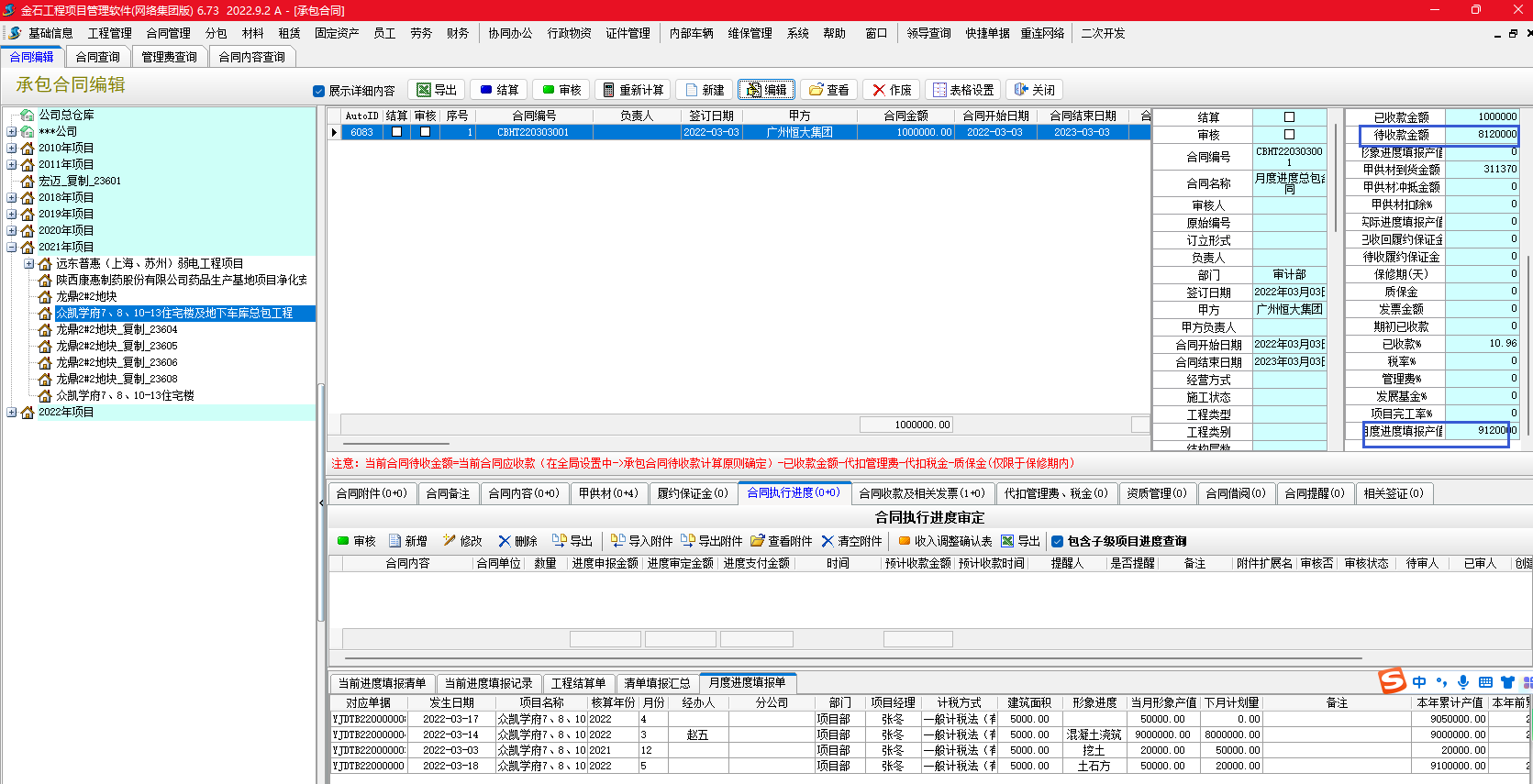 可以根據(jù)承包合同待收款計(jì)算原則設(shè)置以月度進(jìn)度填報(bào)為準(zhǔn)。