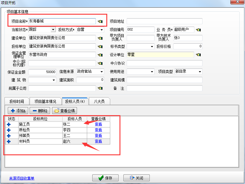 添加完投標人員后,點擊保存該項目新建完成,如下圖: