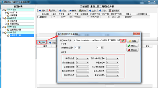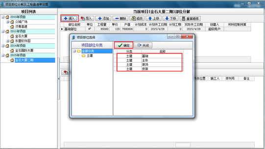 上圖是工地常用部位劃分的部分清單內(nèi)容,下面以上面截圖為例說明軟件中工程的部位劃分。