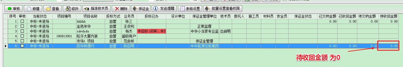 此時(shí)在項(xiàng)目開(kāi)拓中,查看投標(biāo)保證金的相關(guān)信息時(shí),如下圖,