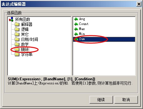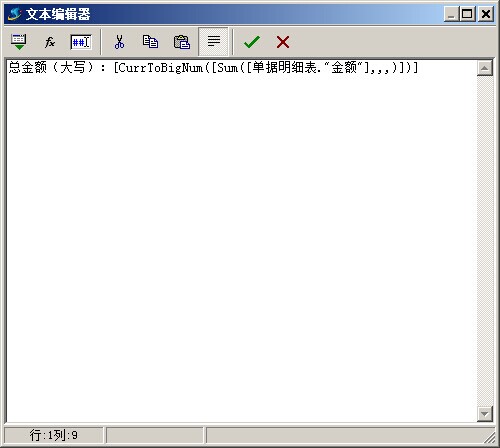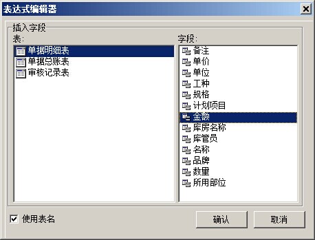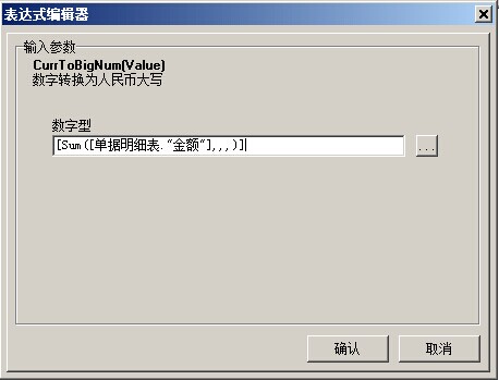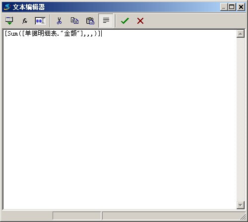 選擇好,之后點擊確定,就會依次保存各個選擇框,最終結(jié)果:[Sum([單據(jù)明細表."金額"],,,)]