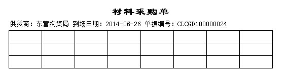 以下圖中單據(jù)(材料采購單)為例,新建一個打印報表。