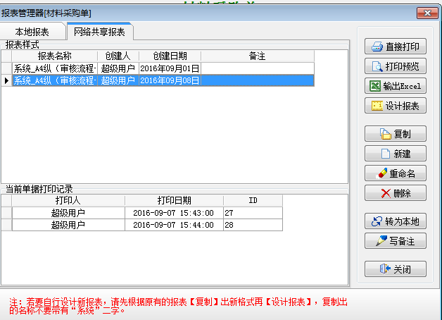 打印次數(shù)變量為:[CurDanJuPrintCount],在業(yè)務(wù)單據(jù)【打印】處,選中打印報(bào)表,點(diǎn)擊設(shè)計(jì)報(bào)表,在報(bào)表【總結(jié)】項(xiàng)中增加“本次打印為第[CurDanJuPrintCount]次打印。
