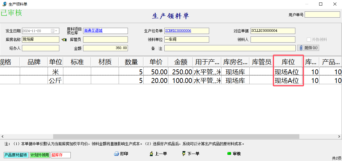 生產(chǎn)增加庫位:應(yīng)用于庫房按實際材料種類進行分類存放,統(tǒng)計該庫位材料的收支存情況