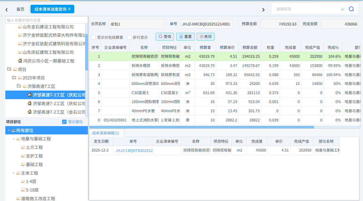 項目人員根據(jù)現(xiàn)場施工情況定時進(jìn)行成本清單填報。