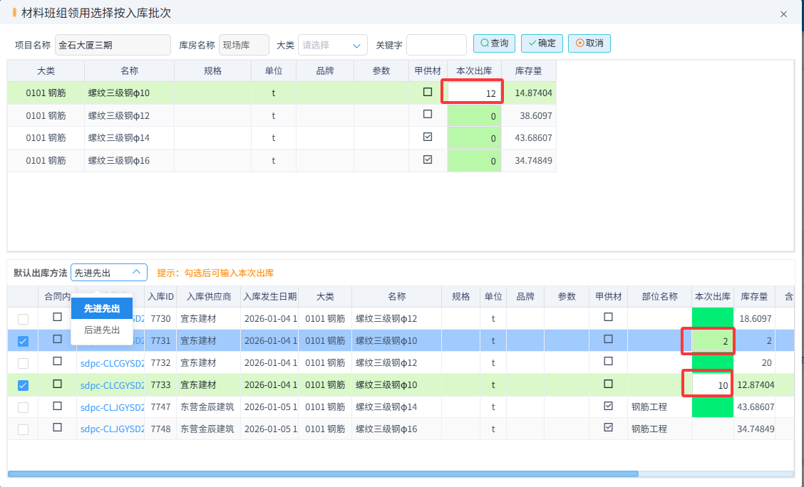 供應(yīng)商送貨完成填寫材料采購驗(yàn)收單,可以選擇直進(jìn)項(xiàng)目和采購入庫。如果選擇采購入庫就自動(dòng)進(jìn)入庫存。項(xiàng)目上領(lǐng)用材料可以填寫材料領(lǐng)用申請(qǐng)單