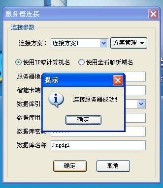 然后點(diǎn)確定按鈕,彈出成功提示,則表示連接成功可以正常登陸使用軟件。如下圖: