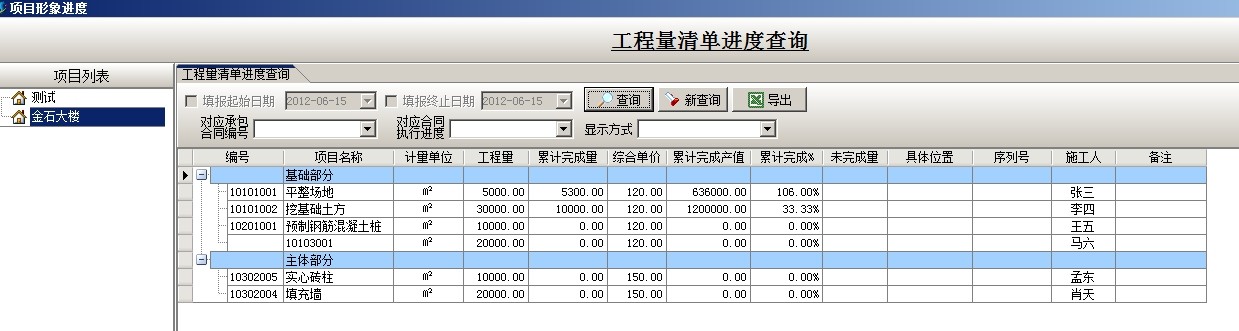 工程進(jìn)行過程中,總公司可以隨時查詢工程量清單