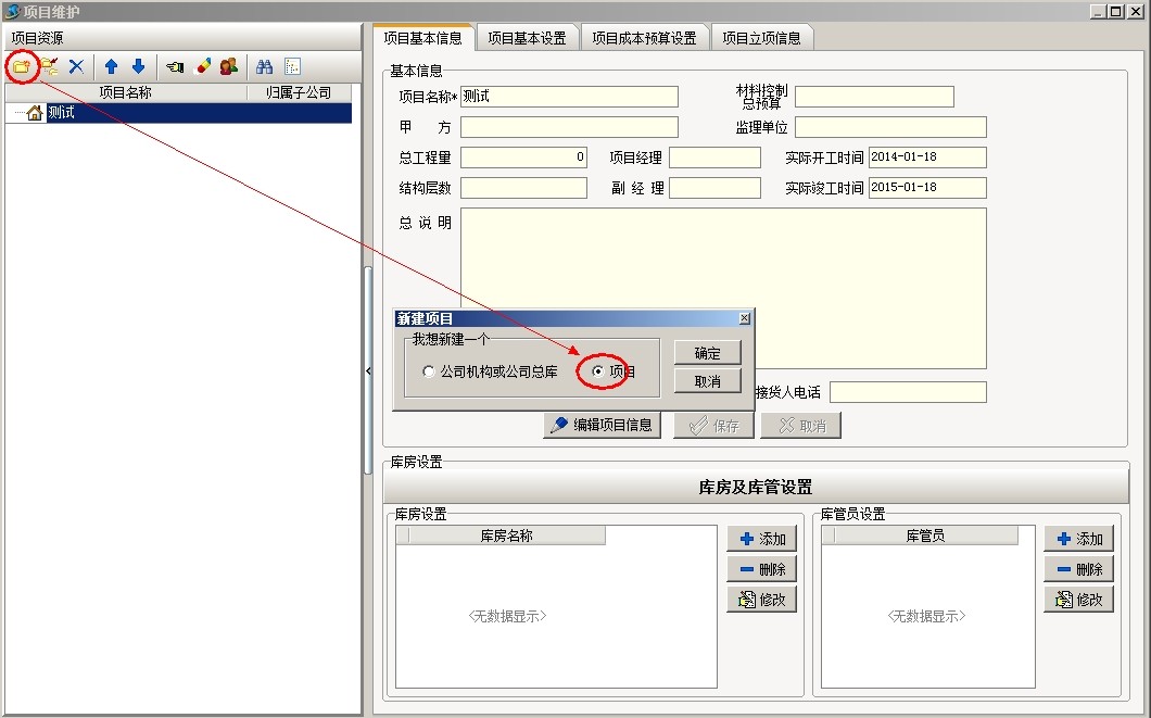 上圖是工地常用部位劃分的部分清單內(nèi)容,下面以上面截圖為例說明軟件中工程的部位劃分,首先新建項(xiàng)目金石大樓